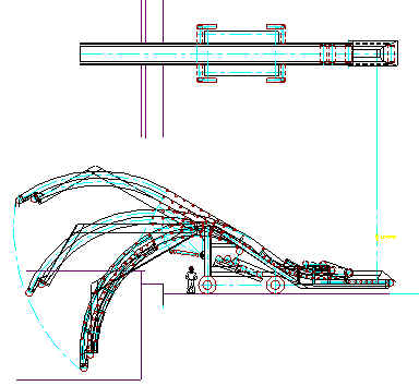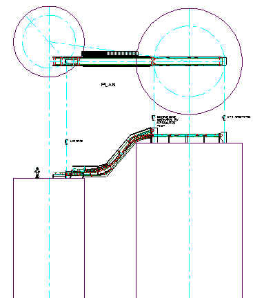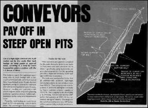 In 1979 Joseph A. Dos Santos undertook a major study to develop a means of moving and elevating large quantities of bulk materials, including coarse products such as rocks, aggregate, coal, etc. at the steepest possible inclines. It was also his intent to use only existing and generally available hardware in order to achieve the most economically feasible and easily maintained high angle conveyor design.